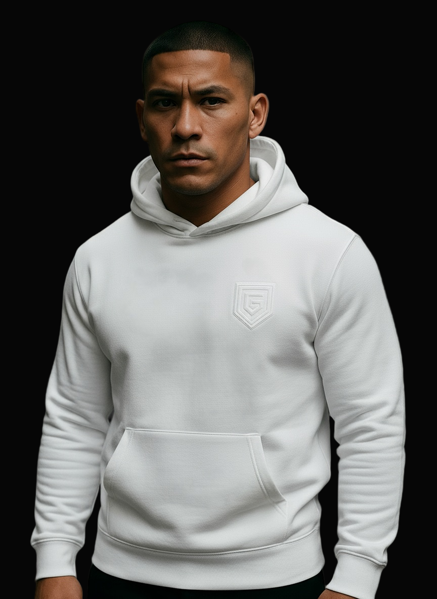 GUTTA Shield Logo Hoodie – Suede White Edition
